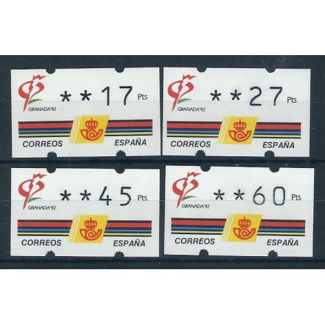 Nuevo Vista rápida 1992 24 Abr. E. M. F.... Referencia EAUT 002 3a * En stock 1 Precio 8,00 € 1992 24 Abr. E. M. F. Granada 92 - 4 valores 3 * sin nº al dorso Etiquetas procedentes de máquinas expendedoras o balanzas flanqueadoras...