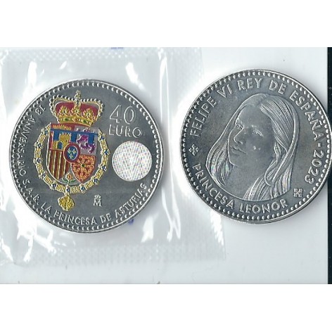 Vista rápida 2023 ESPAÑA MONEDA DE 40 €... Referencia 2023 40 € PR. LEONOR En stock 3 Precio 50,00 € 2023 ESPAÑA MONEDA DE 40 € PRINCESA LEONOR Moneda agotada en el Banco de España