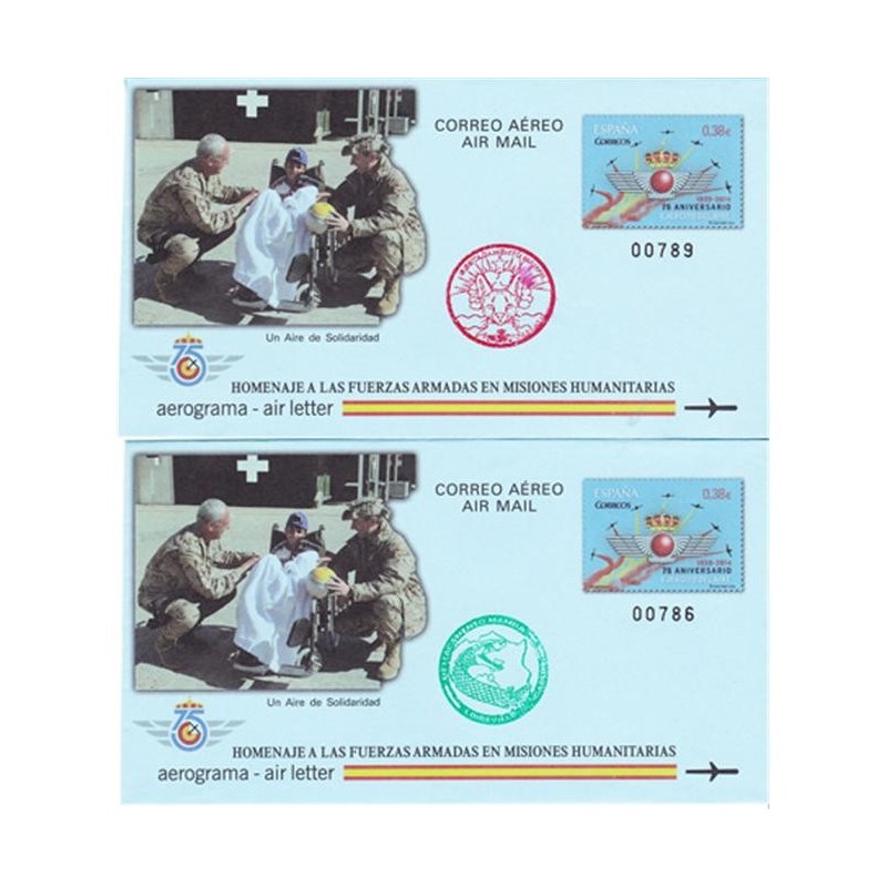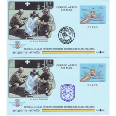 Incluye Documento de ANFIL con los 4 Aerogramas y los 4 matasellos de las Misiones del Ejercicito fuera de España