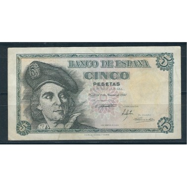 Vista rápida 1951 Emisión 16 Agosto 5... Referencia BI467SC En stock 9 Precio 5,00 € 1951 5 PESETAS CON SERIE Conservación SC