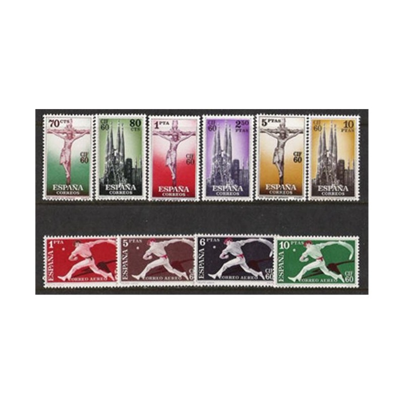 Motivos: 1280, 1282 y 1284, Cristo de Lepanto; 1281, 1283 y 1285, Templo de la Sagrada Familia, Barcelona; 1286 al 1289, Pelota vasca. Cesta punta. Impresos en huecograbado.
