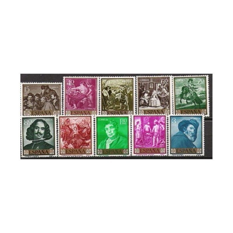 Motivos: 1238, "Los Borrachos"; 1239, "Las Hilanderas"; 1240, "La rendición de Breda"; 1241, "Las Meninas"; 1242, "El príncipe Baltasar Carlos"; 1243, "Autorretrato", fragmento del cuadro de "Las Meninas"; 1244, "La Coronación de la Virgen"; 1245, "Esopo"; 1246, "La Fragua de Vulcano"; 1247, "Menipo". Impresos en huecograbado.