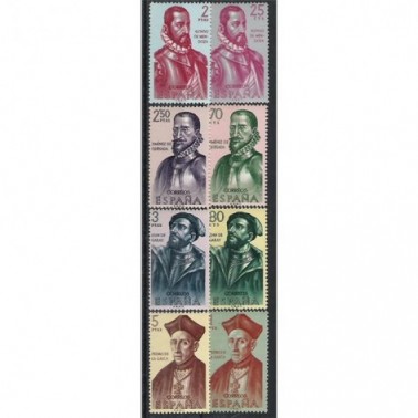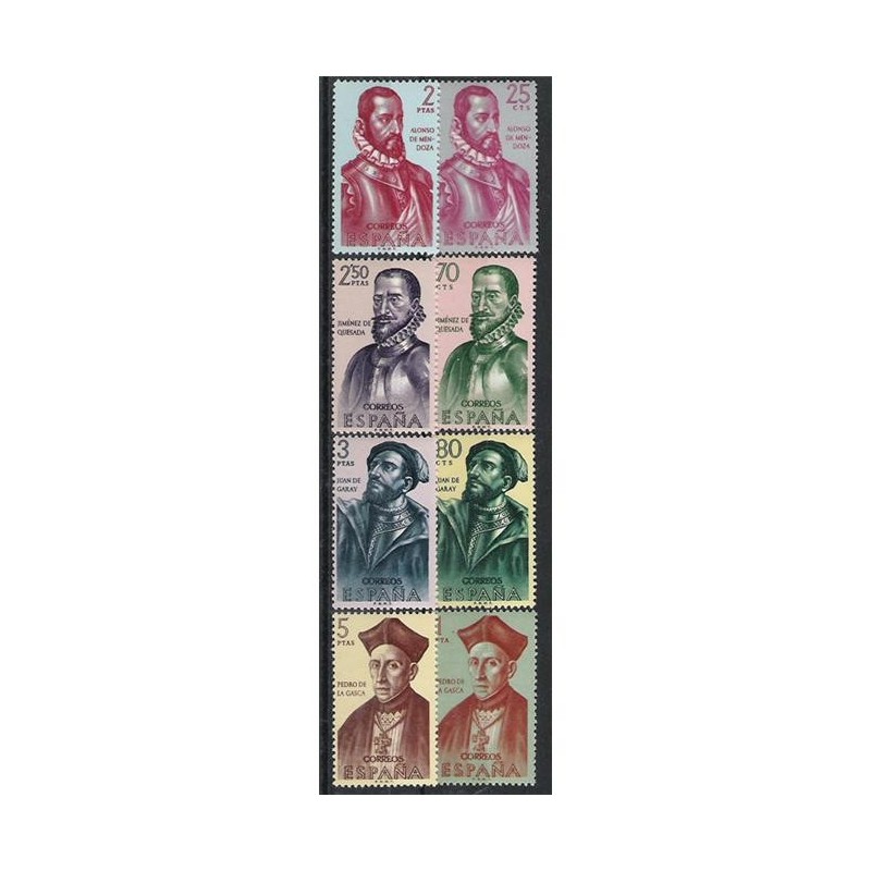Motivos: 1454 y 1458, Alonso de Mendoza (?-1552); 1455 y 1459, Gonzalo Jiménez de Quesada (1509-1579); 1456 y 1460, Juan de Garay (1528-1583); 1457 y 1461, Pedro de La Gasca (1494-1567).