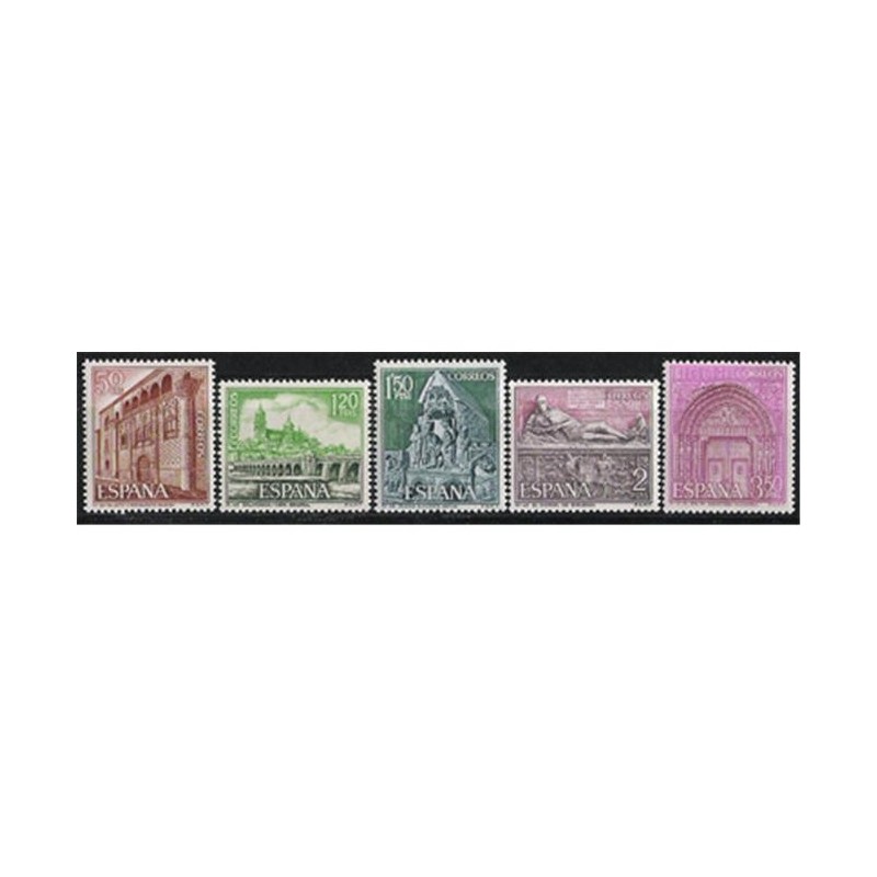 Motivos: 1875, Palacio de los Condes de Benavente, Baeza (Jaén); 1876, Vista general de Salamanca; 1877, Sepulcro de San Vicente, Ávila; 1878, El Doncel, Catedral de Sigüenza (Guadalajara); 1879, Portada de Santa María la Real, Sangüesa (Navarra).