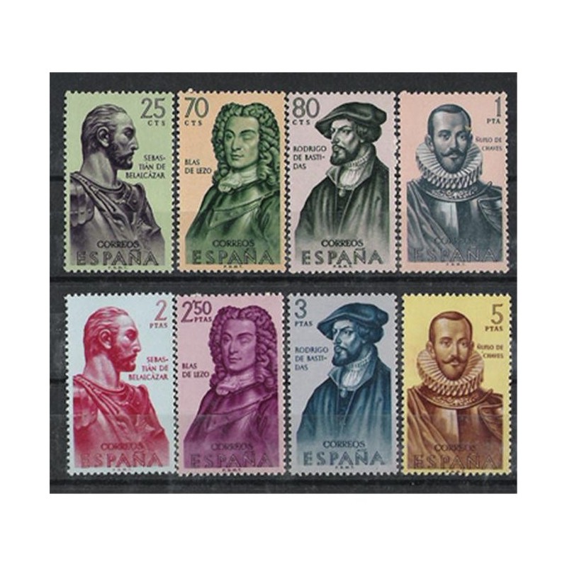 Motivos: 1374 y 1378, Sebastián de Belalcázar (1480-1551); 1375 y 1379, Blas de Lezo (1687-1741); 1376 y 1380, Rodrigo de Bastidas (1475-1527); 1377 y 1381, Ñuflo de Chaves (1518-1568).