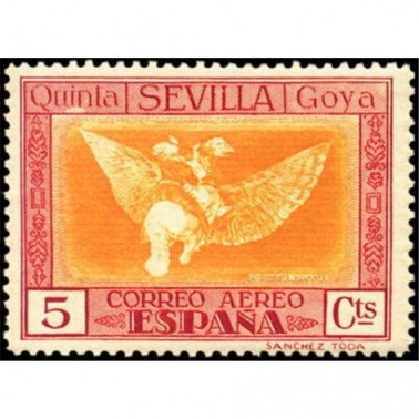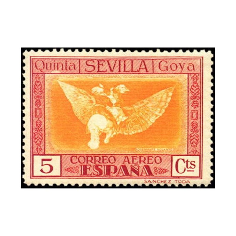 Los diseños en los sellos de correo aéreo se reproducen cuatro aguafuertes de Goya: "Buen viage" (5, 10, 20 y 40 céntimos), "Disparate volante" (5, 15 y 25 céntimos), "Manera de volar" (30 y 50 céntimos y 4 pesetas) y "Volaverunt" (1, 4 y 10 pesetas). Para el correo urgente se utilizaron los de 20 céntimos de correo ordinario y correo aéreo, con una habilitación alusiva.