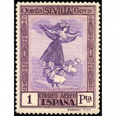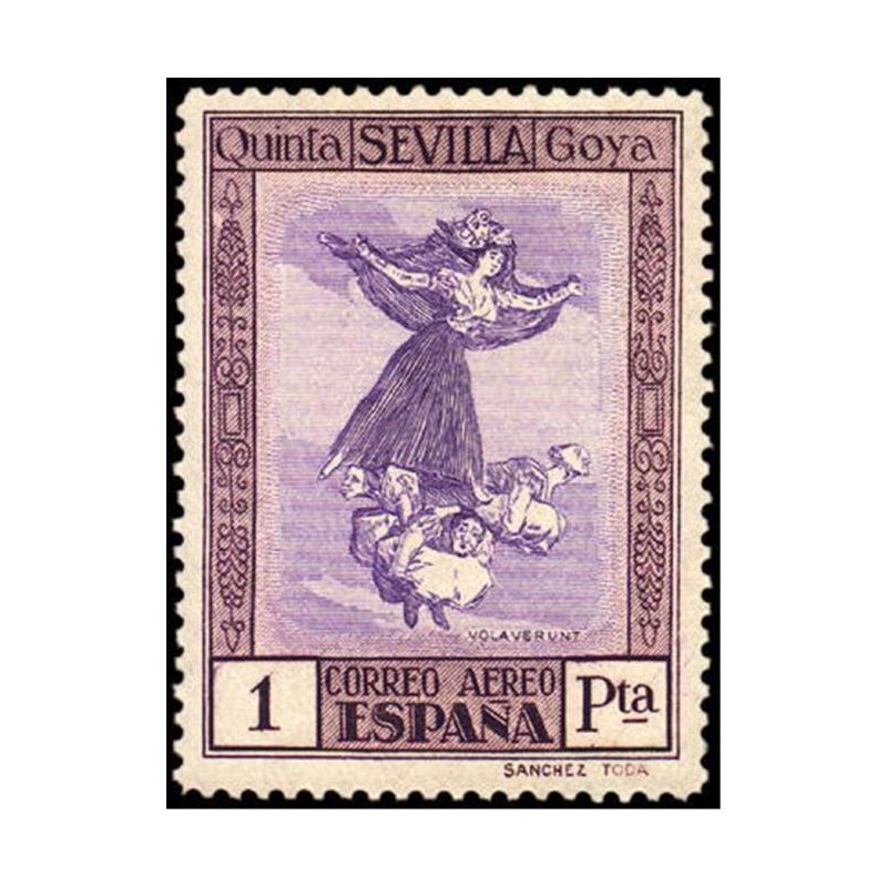 Los diseños en los sellos de correo aéreo se reproducen cuatro aguafuertes de Goya: "Buen viage" (5, 10, 20 y 40 céntimos), "Disparate volante" (5, 15 y 25 céntimos), "Manera de volar" (30 y 50 céntimos y 4 pesetas) y "Volaverunt" (1, 4 y 10 pesetas). Para el correo urgente se utilizaron los de 20 céntimos de correo ordinario y correo aéreo, con una habilitación alusiva.