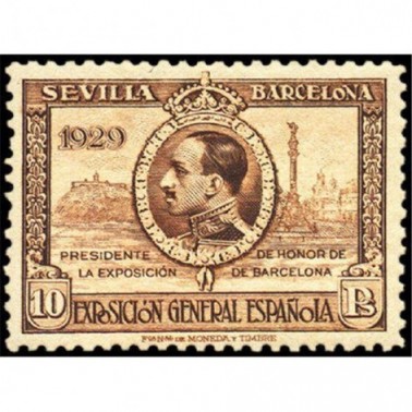 Propaganda de las Exposiciones de Sevilla y de Barcelona.Real decreto de la Presidencia del Consejo de Ministros de 15 de febrero de 1928 (G. de M. del 16) sobre creación, Real orden circular de la Presidencia del Consejo de Ministros de 9 de enero de 1929 (G. de M. del 11) sobre autorización para su circulación, Circular de la Dirección general de Comunicaciones de 14 de enro de 1929 (D.O. de C. del 23) sobre puntos de venta y Real orden del Ministerio de Trabajo y Previsión de 5 de febrero de 1929 (G. de M. del 13) fijando los días de circulación.