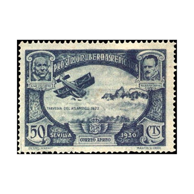 Los diseños de los sellos de correo aéreo reproducen la efigie de un aviador y un paisaje representativo de su país u otro motivo alegórico; son éstos Santos Dumont (5 céntimos), Teodoro Fels (10 céntimos), Dagoberto Godoy (25 céntimos), Pablo Sidar (50 céntimos), Gago Coutinho y Sacadura Cabral (50 céntimos), Charles Lindbergh (1 peseta) y Jiménez e Iglesias (1 peseta). El de 4 pesetas recoge una alegoría bajo el retrato de los reyes de España.