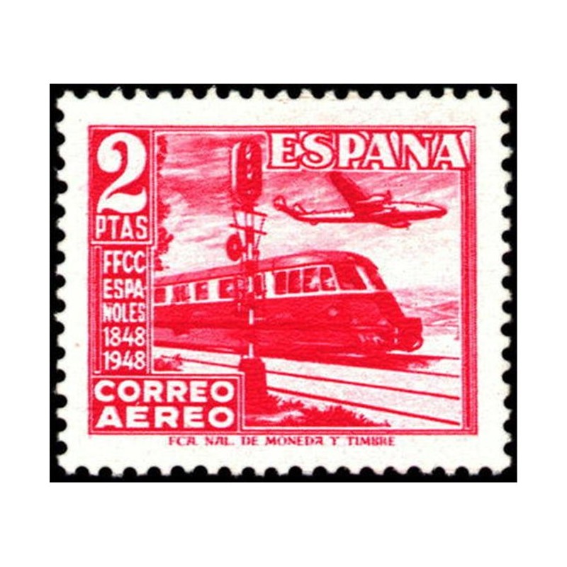 1948 2 PESETAS TREN DIESEL Y AVION LOCKHEED 749 Urgente