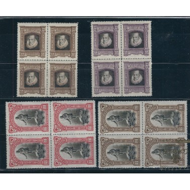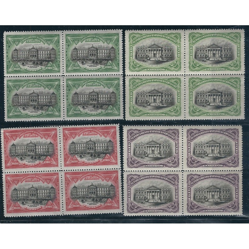 Motivos: 281 y 285, Biblioteca Nacional; 282 y 286, Palacio de las Cortes; 283 y 287, Monumento a Cervantes; 284 y 288, Supuesto retrato de Cervantes, óleo de Juan de Jáuregui. Se trata de una emisión privada de sellos de franquícia para el Senado y el Congrso de los Diputados, innecesaria pues ambas cámaras disfrutaban ya de franquícia.