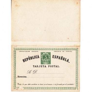Vista rápida 1931 0,15 Ptas - Tipos... Referencia EP066 En stock 1 Precio 81,60 € 1931 0,15 Ptas - Tipos anteriores con sobrecarga Republica Española Habilitación manual en una línea