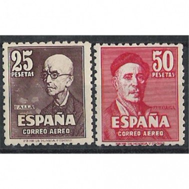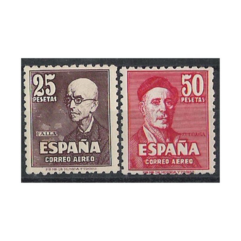 Diseños con la efigie de Manuel de Falla, de un retrato de Zuloaga (25 p.) e Ignacio Zuloaga, de un autorretrato (50 p.).