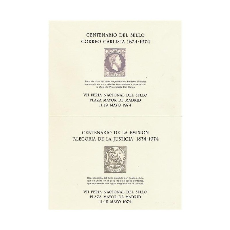 1974 11 May. VII Feria Nacional del sello y Centenario de la emisión "Alegoria de la Justicia" y del sello de correo carlista d