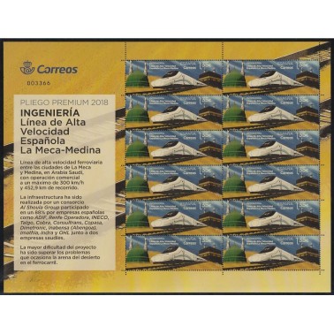2018 24 Sep. 12 X 1,35 € - INGENIERIA - LINEA DE ALTA VELOCIDAD ESPAÑOLA LA MECA-MEDINA - MINIPLIEGO PREMIUM