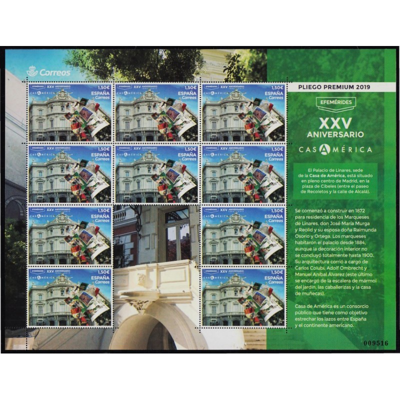 2019 29 Jul. 10 X 1,5 € - XXV ANIVERSARIO DE LA CASA DE AMERICA - MINIPLIEGO PREMIUM