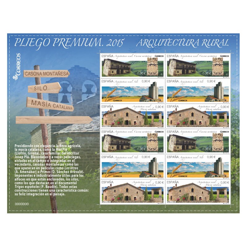 2015 29 Oct. 3 X 0,90 € - ARQUITECTURA RURAL - CASONA MONTAÑESA , SILO , Y MASIA CATALANA - MINIPLIEGOS PREMIUM DE 12 SELLOS