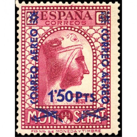 Los diseños del correo ordinario representan un azulejo con el escudo de Montserrat (1, 2, 5 y 10 céntimos), el Abad Oliva enseñando el plano del monasterio a un monje (15 y 50 céntimos), imagen sedente de la Virgen de Montserrat (20 y 30 céntimos), cabeza de la imagen de la Virgen de Montserrat (25 céntimos, 1 y 10 pesetas) y vista general del monasterio (40 céntimos y 4 pesetas); y el de correo urgente es el caballo "Pegaso"