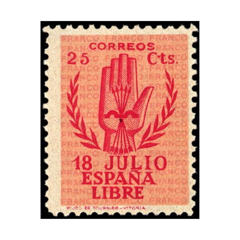 El diseño representa la palma de una mano como símbolo del saludo falangista, cuya insignia aparece en la misma.