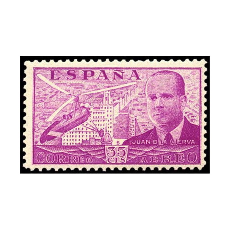 El diseño reproduce el retrato de don Juan de La Cierva y Codorníu, con el autogiro de su invención sobre la Gran Vía de Madrid; fue dibujado por José López Sánchez-Toda.