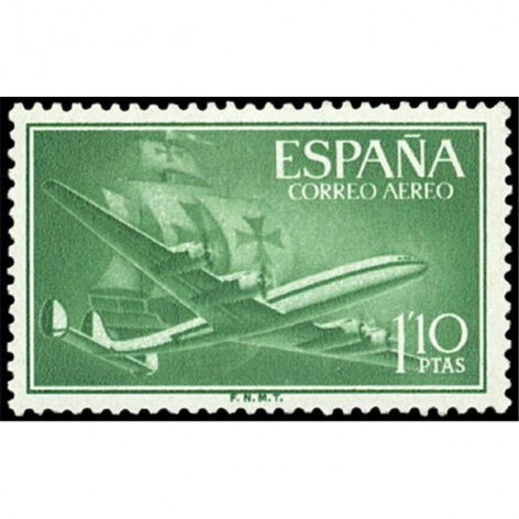 1955-56 1.10 PESETAS SUPERCONSTELLATION Y NAO "SANTA MARIA"