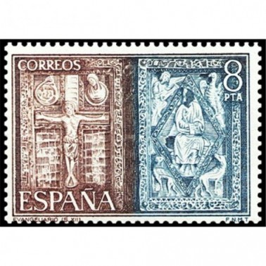 1975. 4 de abril. Exposición Mundial de Filatélia ESPAÑA-75 (Orfebrería). azul y castaño
