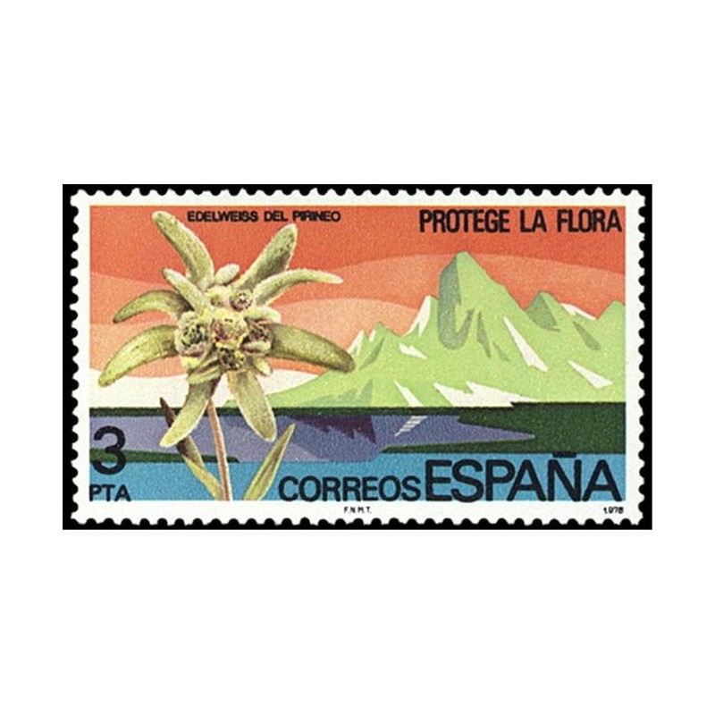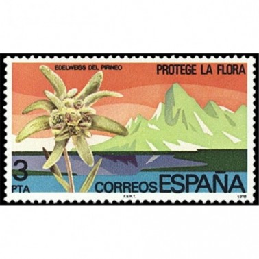 2469, Protección de la flora. Flor de las nieves Edelweiss sobre paisaje pirenáico;