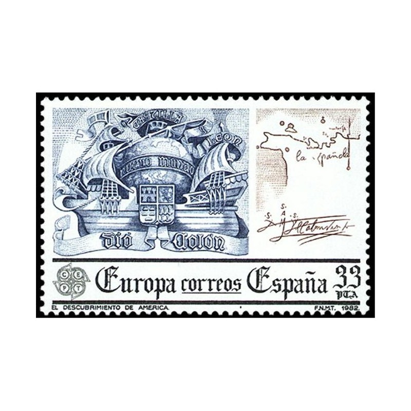 Motivos: 2657, Representa la Unidad de España. Fernando V de Aragón e Isabel I de Castilla, tomados de sellos de la época; en el centro, los cuarteles que componen el Escudo Nacional; 2658, Detalle del monumento a Colón, en la Plaza del Descubrimiento de Madrid; a la derecha, mapa autógrafo de la isla La Española y firma del descubridor.