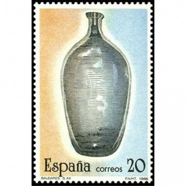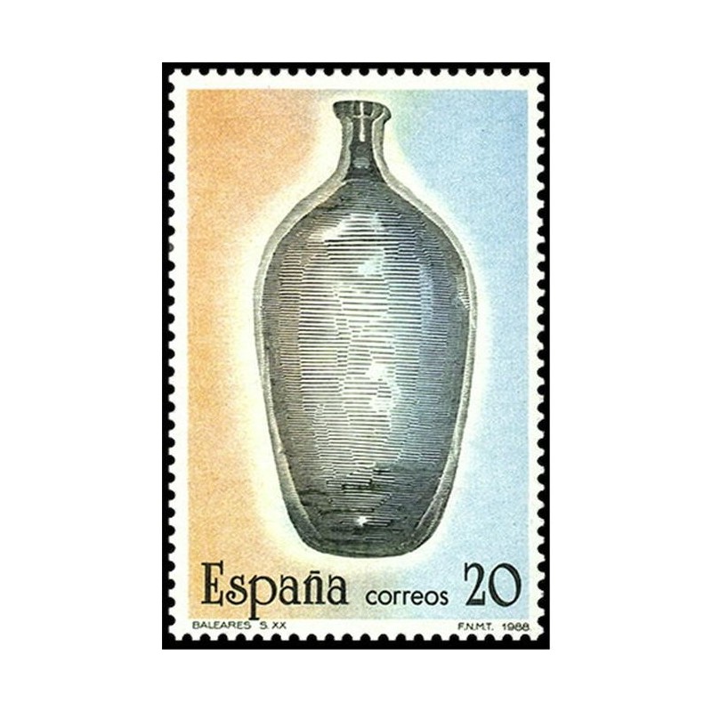 Motivos: 2941, Valencia. Copa de vidrio incoloro y decoración grabada a la rueda, del siglo XVIII, procedente del Museo de Bellas Artes de Valencia; 2942, Madrid. Jarrita de vidrio incoloro y decoración grabada en tonos azules, del siglo XVIII, procedente de Cadalso de los Vidrios y depositada en el Museo Arqueológico de Madrid; 2943, La Granja de San Ildefonso. Dulcera de cristal dorado, del siglo XVIII, que se conserva en el Museo Arqueológico de Madrid; 2944, Andalucía. Jarrita de dos asas en tono verde claro, del siglo XVIII, procedente de Castril de la Peña y conservada en el Museo Arqueológico de Granada; 2945, Cataluña. Almorratxa del siglo XVII, que se conserva en el Palacio de Peralada en Gerona; 2946, Baleares. Botellón de vidrio transparente en color varde, realizado en 1985 y conservado en el Museo de Mallorca, en Palma de Mallorca.