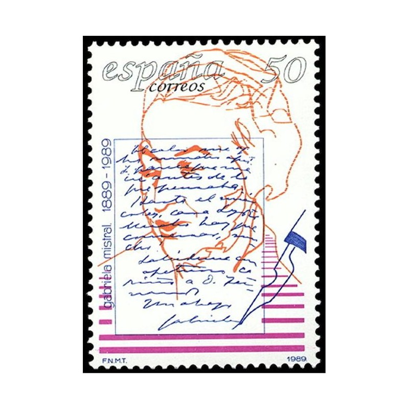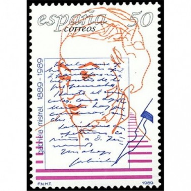 Motivos: 3013, I centenario del nacimiento de la escritora chilena Gabriela Mistral. Imagen de la autora y uno de sus escritos con su firma; 3014, I centenario del nacimiento de Charles Chaplin "Charlot", director, guionista y actor cinematográfico.