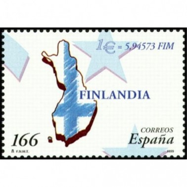 1999 1 € MAPA CON LA BANDERA DE FINLANDIA