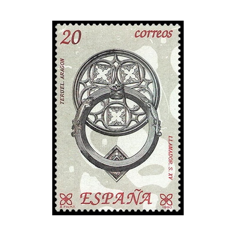 Motivos: 3061, Aragón. Llamador o aldabón de forja de siglo XV, Museo Provincial del Teruel; 3062, Andalucía. Aldaba realizada en Ronda (Málaga) en el siglo XVI; 3063, Cataluña. Pistola del siglo XVII producida en la Farga Catalana, Museo Fol-klórico de Ripoll (Gerona); 3064, Castilla-La Mancha. Llamador realizado en Cuenca entre los siglos XVII y XVIII; 3065, Galicia. Espejo de cerradura, Museo do Pobo Galego, de Santiago de Compostela; 3066, Pais Vasco. Transfuego del siglo XVIII, procedente de Vizcaya, Museo Arqueológico y Etnológico de Bilbao. Diseño de Miguel Ángel Escobar. Grabados, respectivamente, por J. Manuel Mata, Jesús Terriza, Antonino Sánchez, Alfredo de Oro, Julián González de la Lastra y Pablo Sampedro.