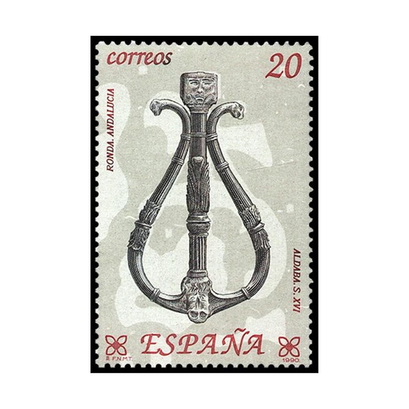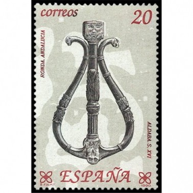 Motivos: 3061, Aragón. Llamador o aldabón de forja de siglo XV, Museo Provincial del Teruel; 3062, Andalucía. Aldaba realizada en Ronda (Málaga) en el siglo XVI; 3063, Cataluña. Pistola del siglo XVII producida en la Farga Catalana, Museo Fol-klórico de Ripoll (Gerona); 3064, Castilla-La Mancha. Llamador realizado en Cuenca entre los siglos XVII y XVIII; 3065, Galicia. Espejo de cerradura, Museo do Pobo Galego, de Santiago de Compostela; 3066, Pais Vasco. Transfuego del siglo XVIII, procedente de Vizcaya, Museo Arqueológico y Etnológico de Bilbao. Diseño de Miguel Ángel Escobar. Grabados, respectivamente, por J. Manuel Mata, Jesús Terriza, Antonino Sánchez, Alfredo de Oro, Julián González de la Lastra y Pablo Sampedro.