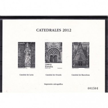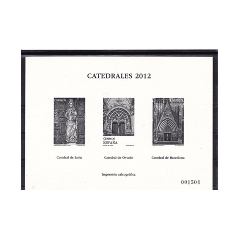 ESPAÑA 2012 PRUEBA PARA OBSEQUIOS A CLIENTES DEL SERVICIO FILATELICO - CATEDRALES LEON, OVIEDO Y BARCELONA