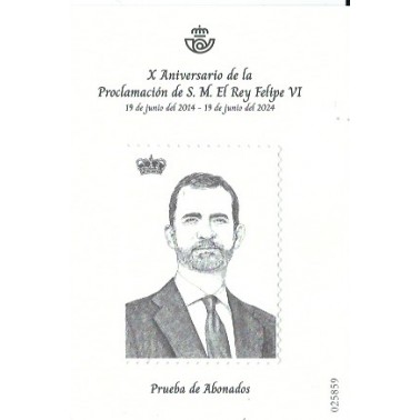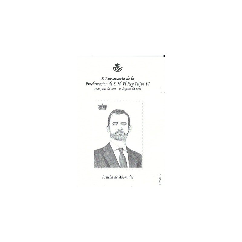 ESPAÑA 2024 PRUEBA PARA OBSEQUIOS A CLIENTES DEL SERVICIO FILATELICO - X ANIVERSARIO DE LA PROCLAMACION DE S.M. FELIPE VI