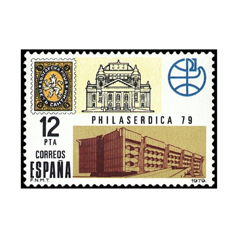 1979 12 PESETAS PRIMER SELLO BULGARO,EMBLEMA Y SEDE DED LA EXPOSICION