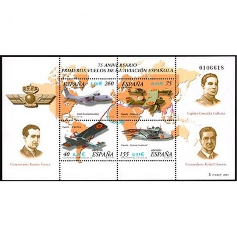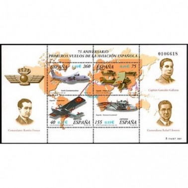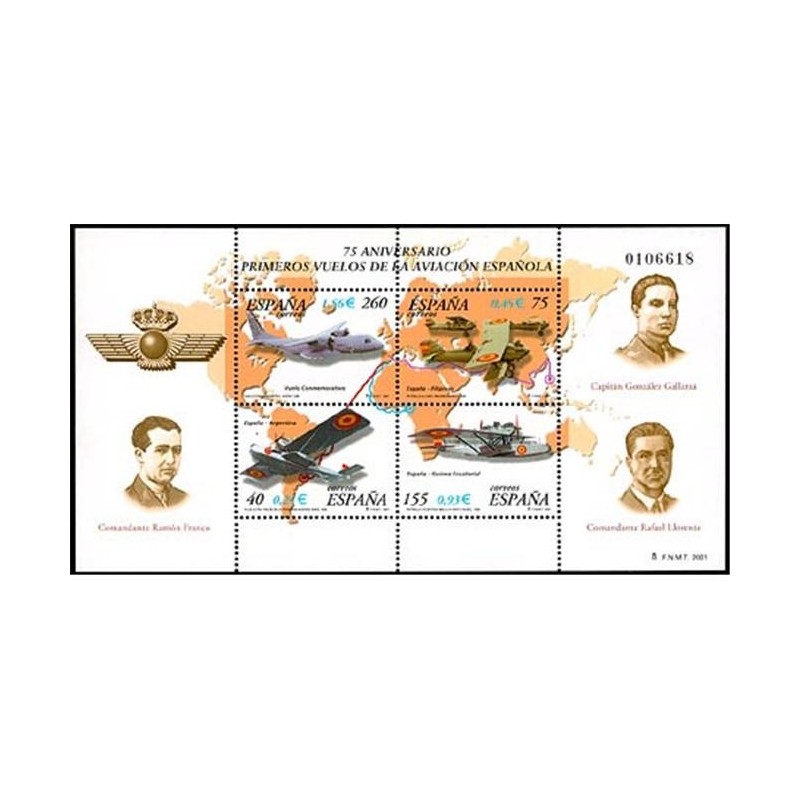 2001 H.B. 75º Aniversario de primeros vuelos de la aviación española. multicolor. 1065 - 3790