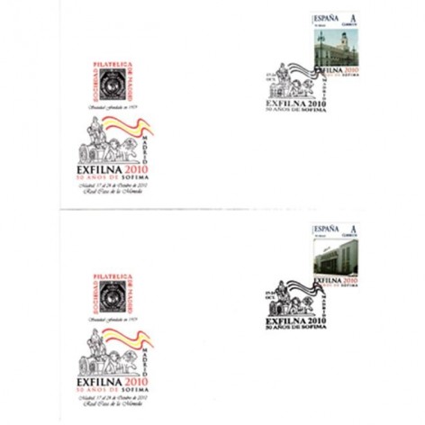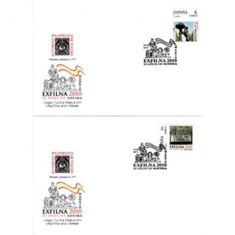 6 Sobres con los matasellos en los sellos personalizados emitidos por la Entidad en el