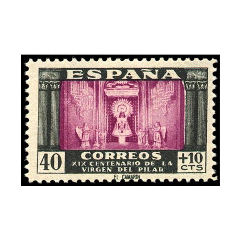 Texto de la cabecera: Emisión extraordinaria conmemorativa del XIX centenario de la Virgen del Pilar.- Correo ordinario.- 100 sellos de 40 cts + 10 cts.