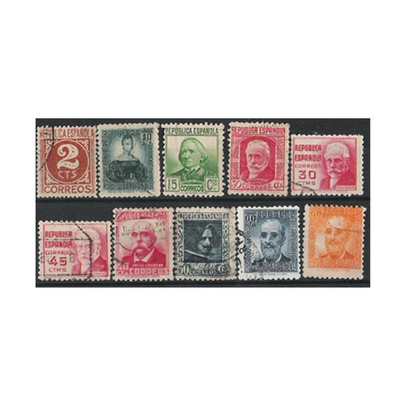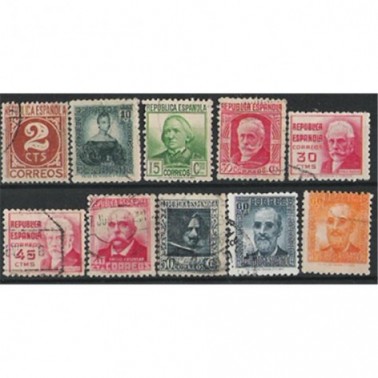 Diseños con las efigies de doña Mariana Pineda (10 céntimos), doña Concepción Arenal (15 céntimos), don Pablo Iglesias, en vertical (30 céntimos), don Pablo Iglesias, en apaisado (30 y 45 céntimos), don Emilio Castelar (40 céntimos), don Diego Velázquez (50 céntimos) y don Fermín Salvoechea (60 céntimos) en azul y en naranja.
