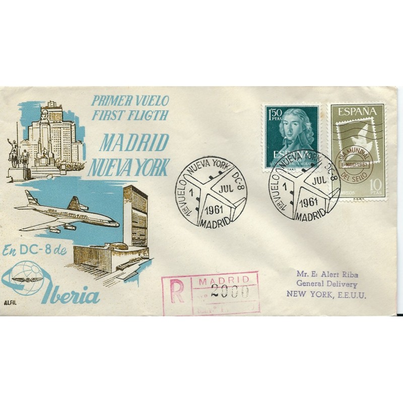 Vista rápida 1951 Carta con marca... Referencia SME1951/10/12 En stock 7 Precio 35,00 € 1951 CARTA CON MARCA AEROPOSTAL V CENTENARIO Sobre circulado por correo aéreo el día 12 de Octubre de 1951 con matasello de llegada a New York...
