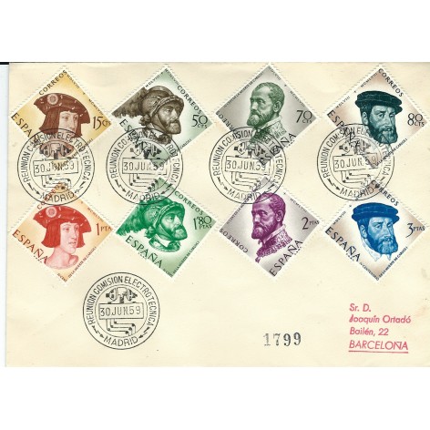 Vista rápida 1954 10-11 Jul. Matasello... Referencia PV1954/07/11-IDA Y VUELTA En stock 2 Precio 15,00 € 1954 10 Y 11 Jul. Matasello Primer Vuelo sin sobretasa - Madrid ida y vuelta. Circulado con matasello aéreo de Madrid y Barcelona , y al dorso...