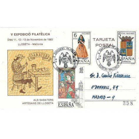 Vista rápida 1983 11 Nov. V Exposición... Referencia SME1983/11/11FR En stock 1 Precio 2,00 € 1983 11 Nov. V Exposición Filatélica - Lloseta-Mallorca Frontal