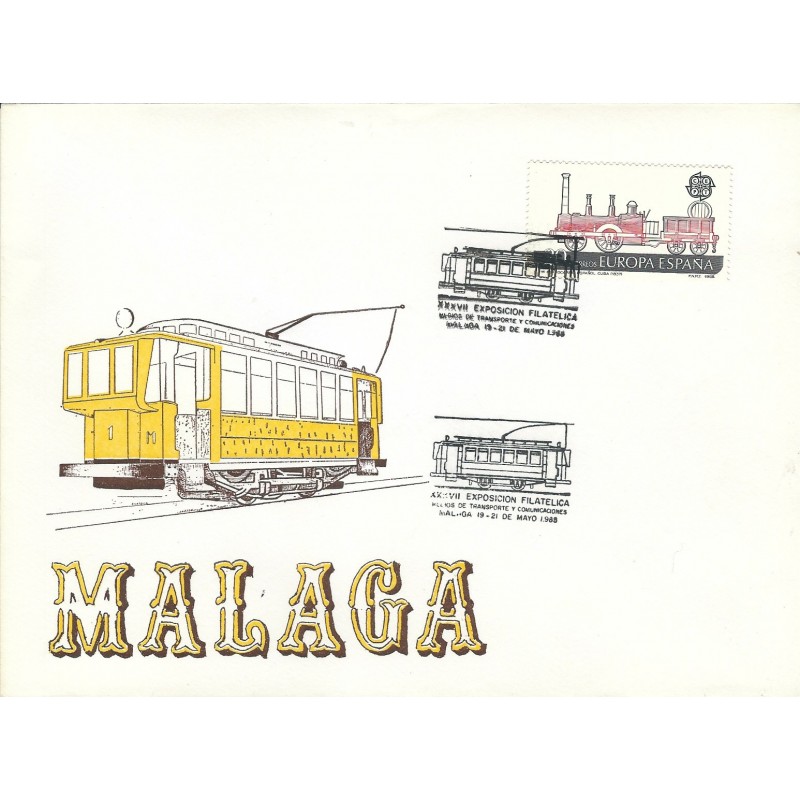 1988 19 May. Matasello especial XXXVII Exposición Filatélica Medios de Transporte y Comunicaciones de Málaga.
