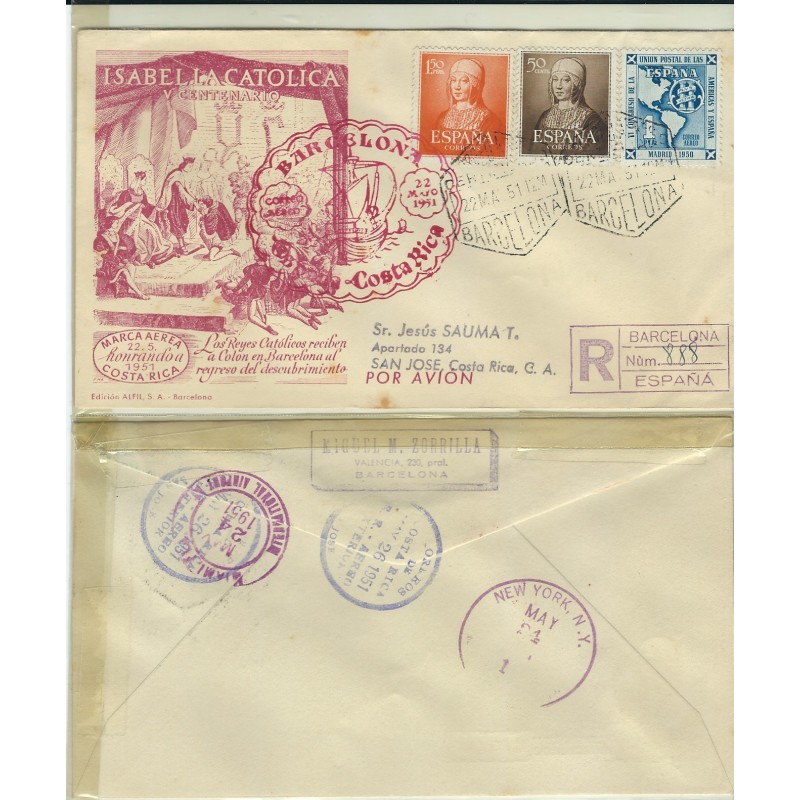 1951 22 May. España - Costa Rica - Correo Aéreo - Barcelona