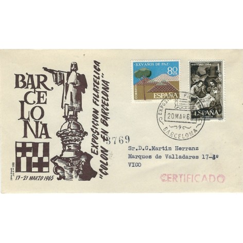 Sobre circulado por certificado en carta con el matasellos de la Exposición
