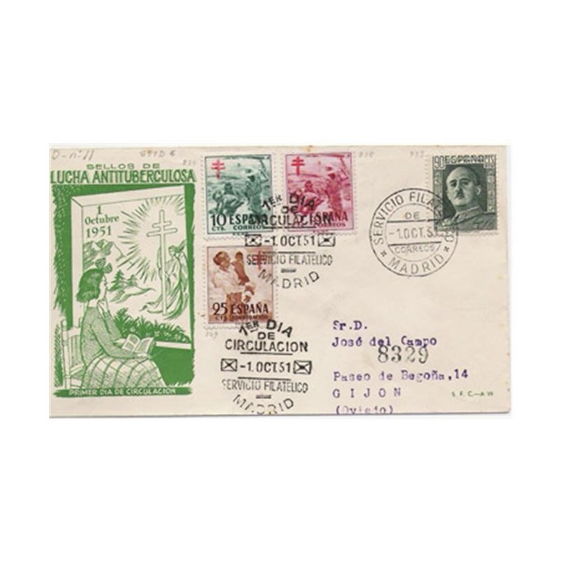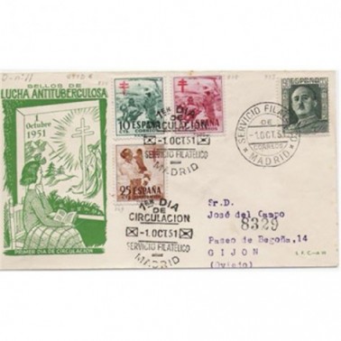 1951 PRO TUBERCULOSOS Sobre Primer Día