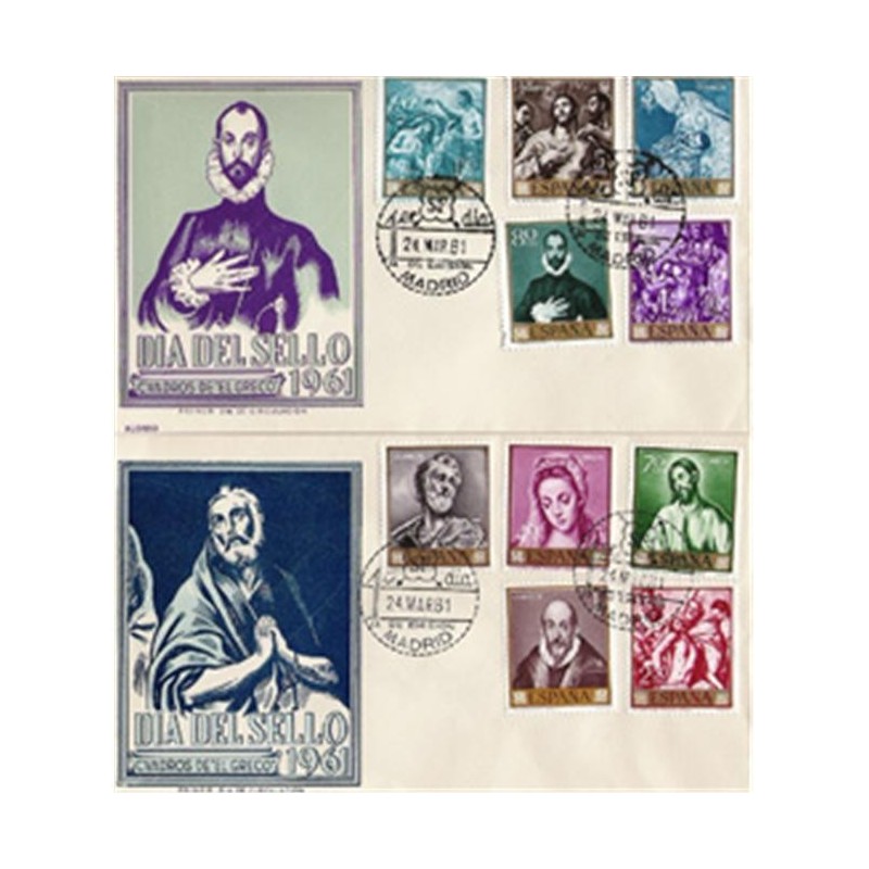 Motivos: 1330, "San Pedro"; 1331, "La Sagrada Familia" (detalle); 1332, "Oración en el Huerto"; 1333, "El caballero de la mano en el pecho"; 1334, "Autorretrato"; 1335, "La Santísima Trinidad"; 1337, "El entierro del conde de Orgaz"; 1338, "El Expolio"; 1339, "Martirio de San Mauricio".