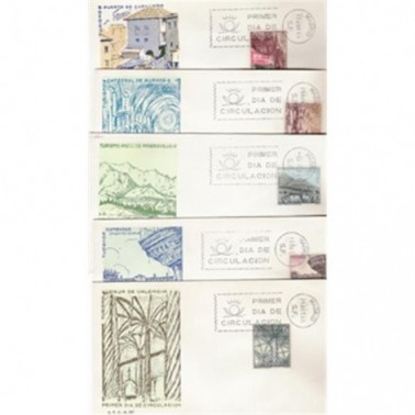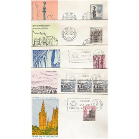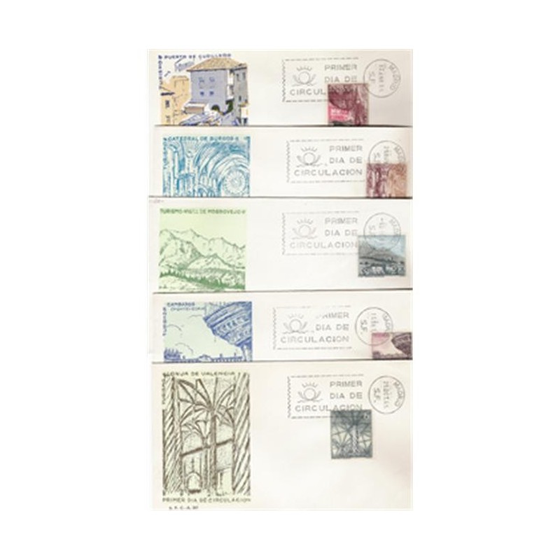 Motivos: 1643, Monumento a Colón, Barcelona; 1644, Arco de Santa María, Burgos; 1645, Sinagoga (Santa María la Blanca), Toledo; 1646, Vista de Zamora; 1647, Catedral de Sevilla; 1648, Cudillero (Asturias); 1649, Interior de la Catedral de Burgos; 1650, Mogrovejo (Cantabria); 1651, Pazo de Fefiñanes, Cambados (Pontevedra); 1652, Lonja, Valencia.