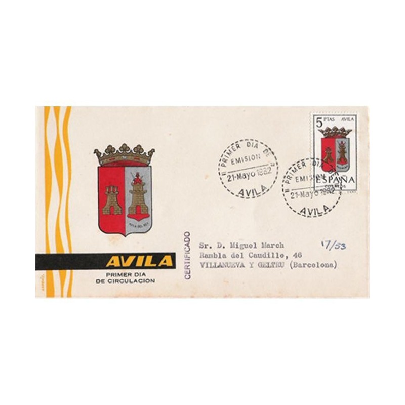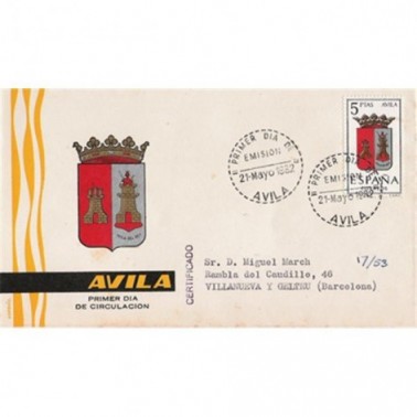 1962 5 PESETAS ESCUDO AVILA Sobre Primer Día
